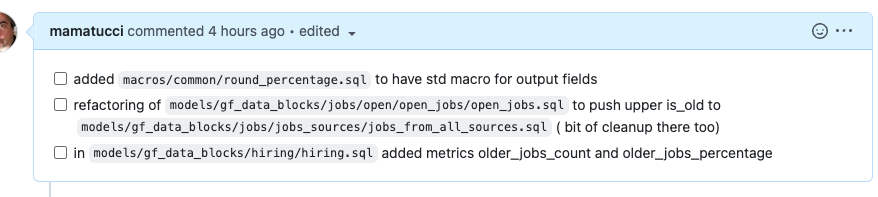 - (opt) after code changes are committed to the remote paste the commit as comment to the message thread