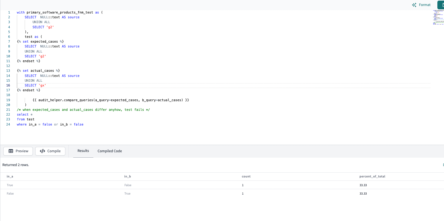 {{ audit_helper.compare_queries(a_query=expected_cases, b_query=actual_cases) }}