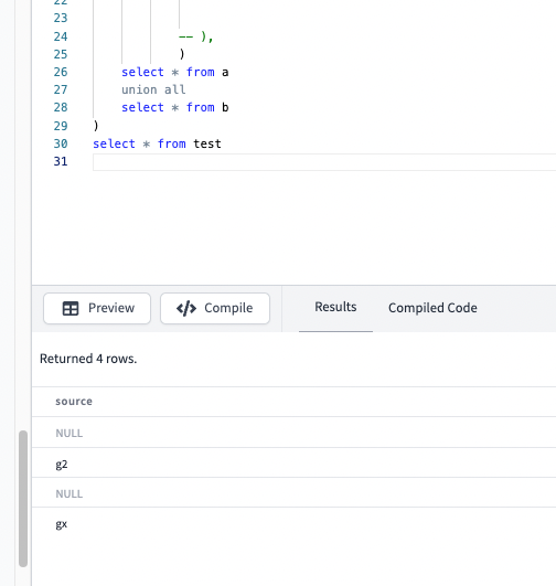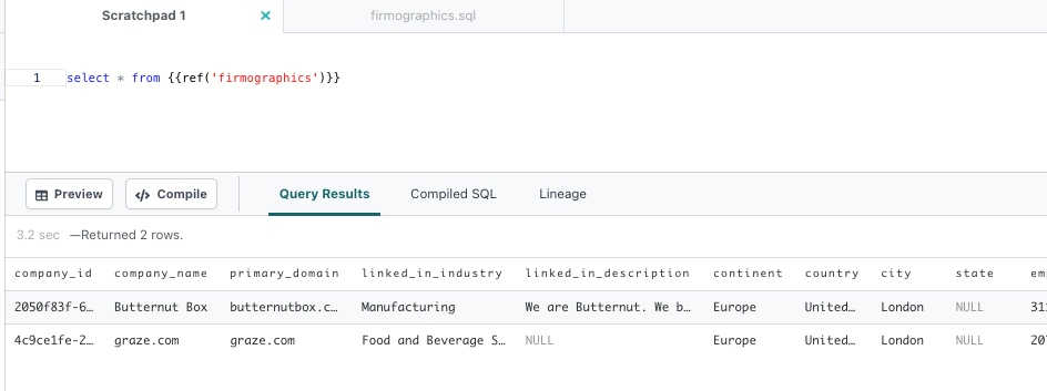 dbt compile -s all_jobs_by_descriptionYou will see compiled data in target directory
