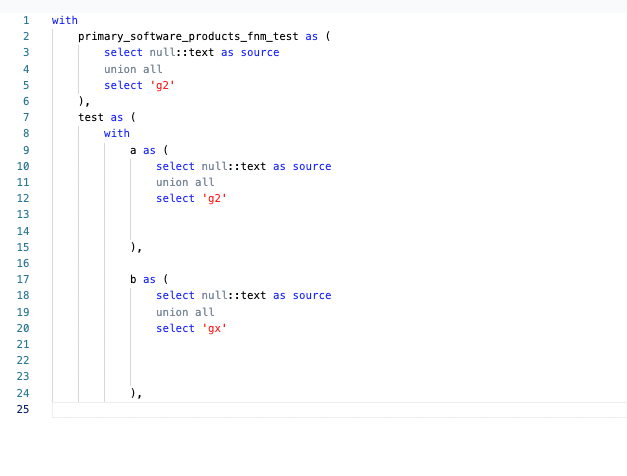 - we want to favour explicit tables used (so you can query them one by one and trouble shoot )
